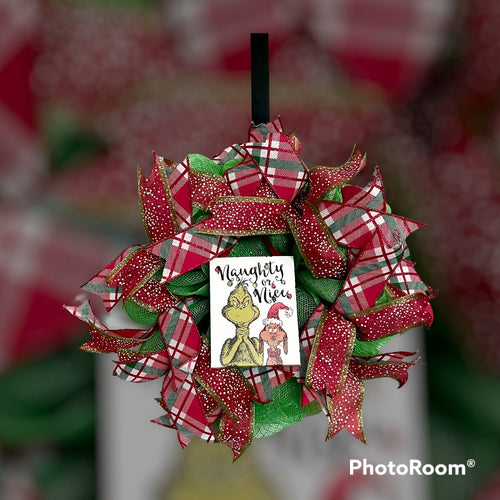 Naughty or Nice Christmas Wreath Light Up Canvas