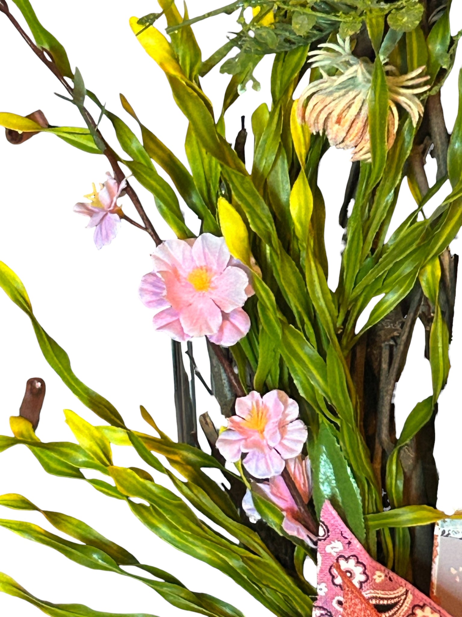 Meet the Hello Sweet Cheeks Wreath—a delightful blend of farmhouse flair and bovine charm! Perfect for sprucing up your space, this quirky girl cow is here to brighten your day (and your door)! Say hello to a whole new moo-d in décor that’ll have your guests udderly impressed! On a 19 inch grapevine, wreath is embellished with faux floral and greenery. Aluminum Hello Sweet Cheeks sign is 12 x 8 inches. Wreath is embellished with bows including cowboy theme. Wreath is approximately 27 x 17 inches.