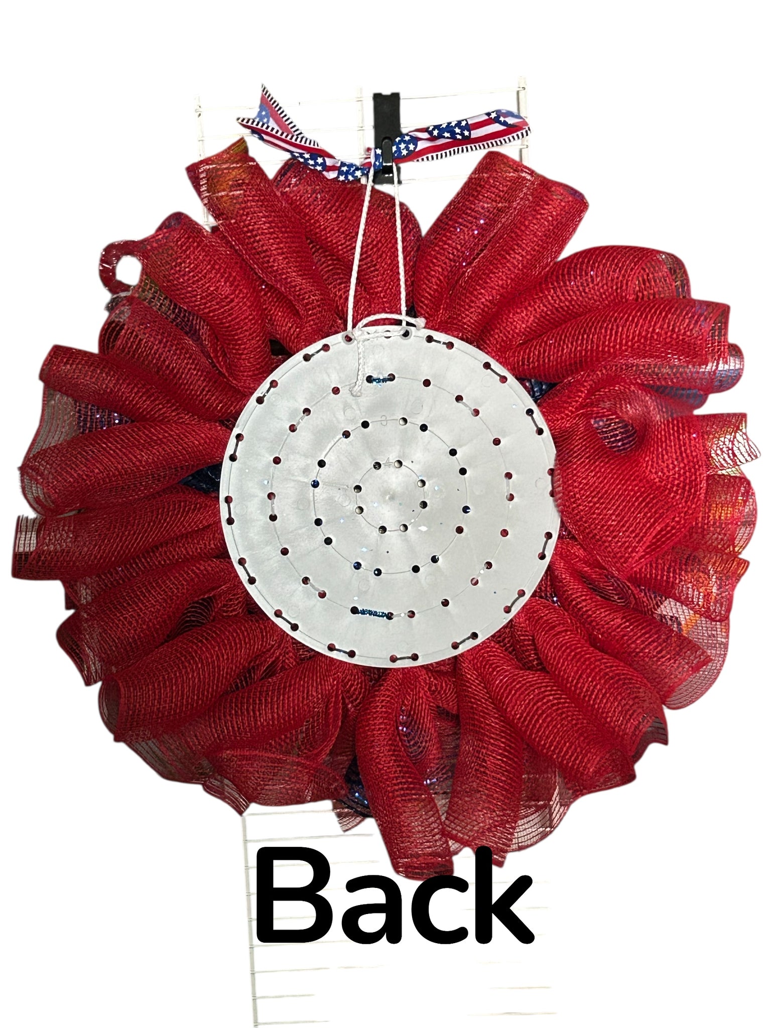Celebrate the spirit of patriotism with the "Land of the Free Because of the Brave" wreath. This thoughtful gift honors veterans and pays tribute to their courage, making it a heartfelt addition to any home or memorial. Show your appreciation with this meaningful gesture. On a 12 inch UITC board, base is covered with red mesh, blue metallic mesh, and patriotic theme ribbons including red, white, and blue hearts. The aluminum sign “Land of the Free Because of the Brave” is 12 inches. The wreath is approximately 24 inches.